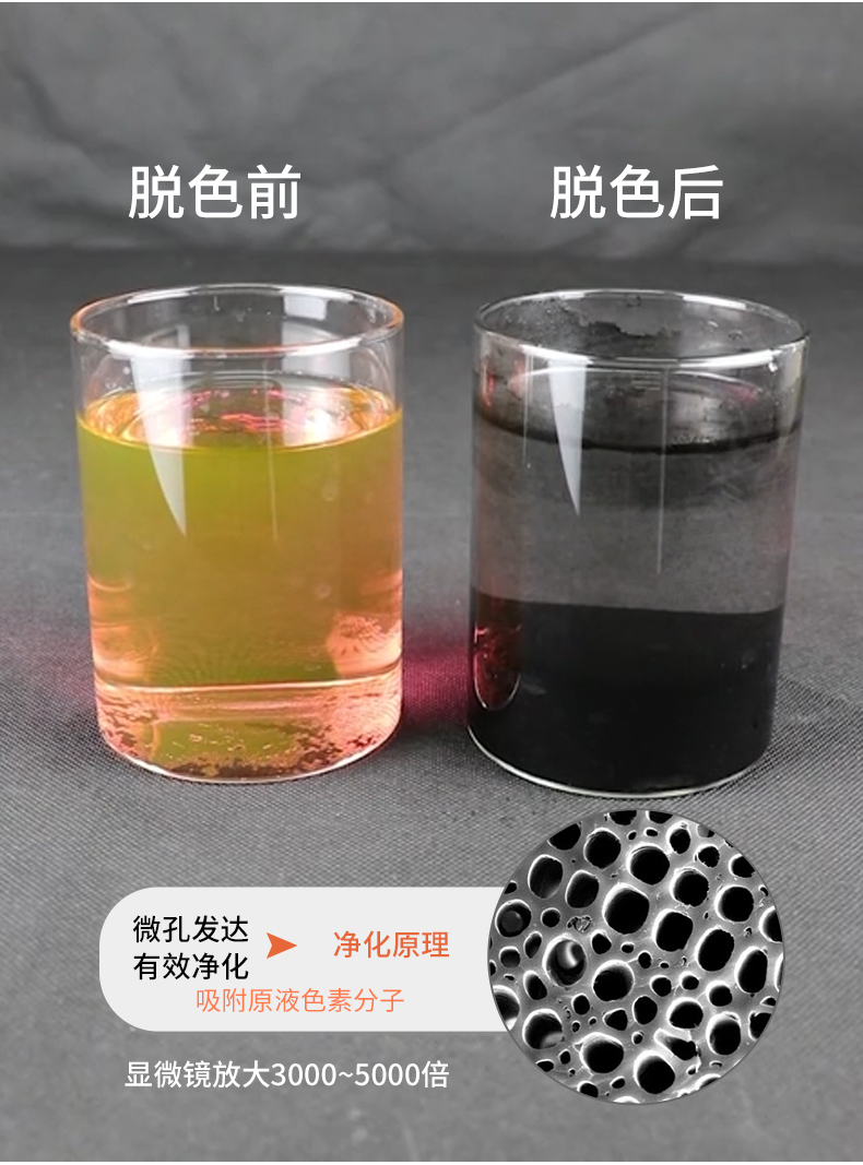 對于水:當水流過活性炭表面時,雜質、污垢、金屬離子和氯、苯、油脂等污染物會附著在活性炭表面。因此,活性炭除具有過濾水的作用外,還具有脫色作用。