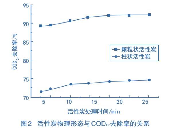2、活性炭物理形態(tài)對(duì)CODcr去除率的影響